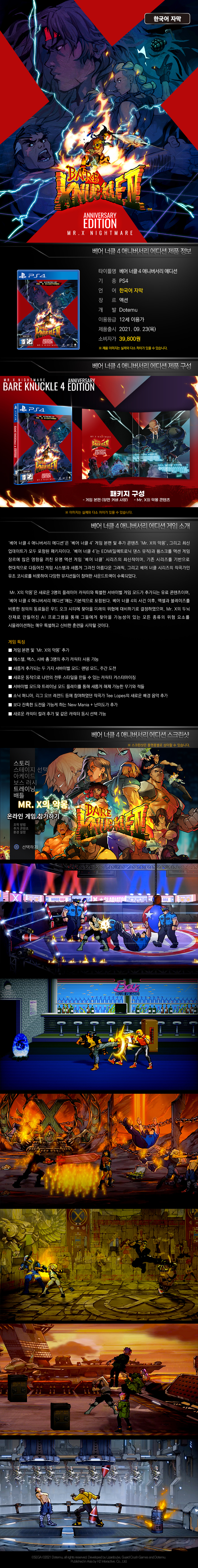 PS4 베어 너클 4 애니버서리 에디션 [한국어판]